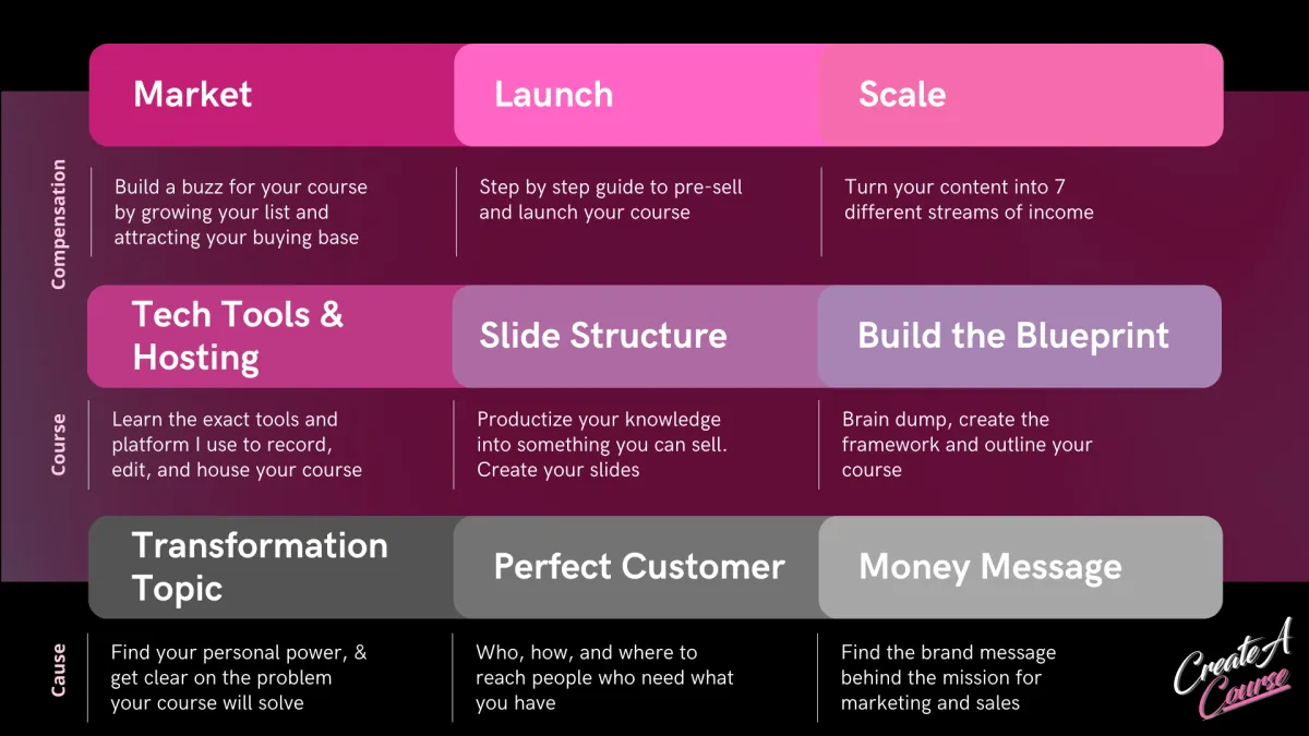 This program is will help you create a course and accelerate your online business with complementary digital products! Here, you'll learn to master your money message, and create courses for six+ additional streams of income. By the time you finish the six weeks, you will have already outlined, created, recorded, marketed, launched, and sold your first course! Now is the time to amplify your authority with your God-given message to the right audience. Let's do it together!